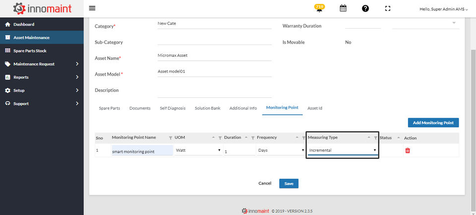 InnoMaint is the CMMS Software used for the below functionalities.