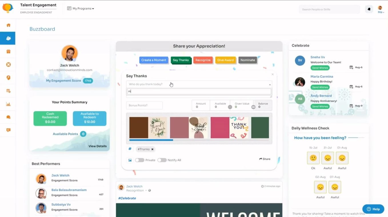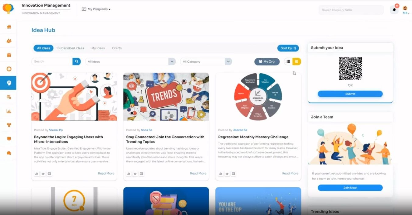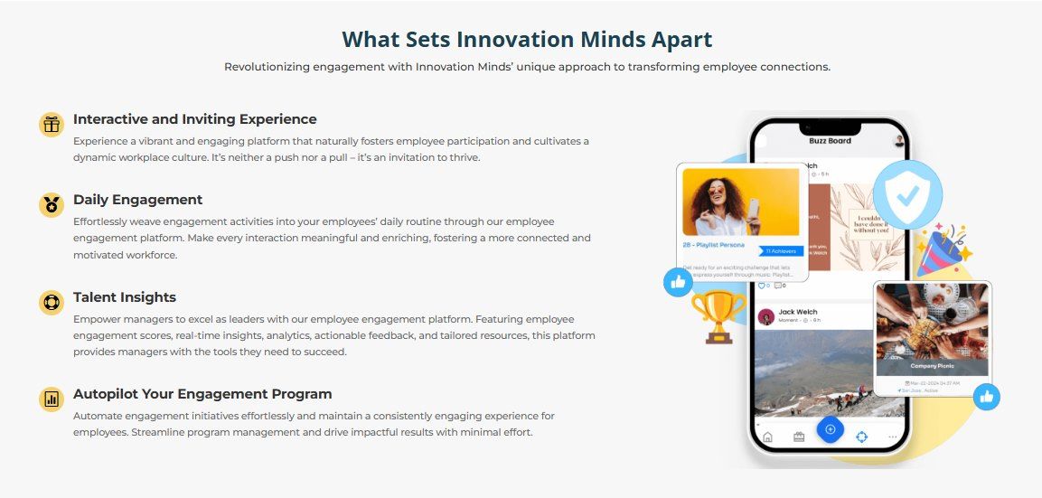 Innovation Minds is the Employee Experience Platform used for the below functionalities.