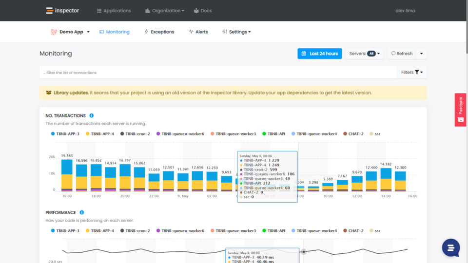 Inspector is the Application Performance Monitoring (APM) Tools used for the below functionalities.