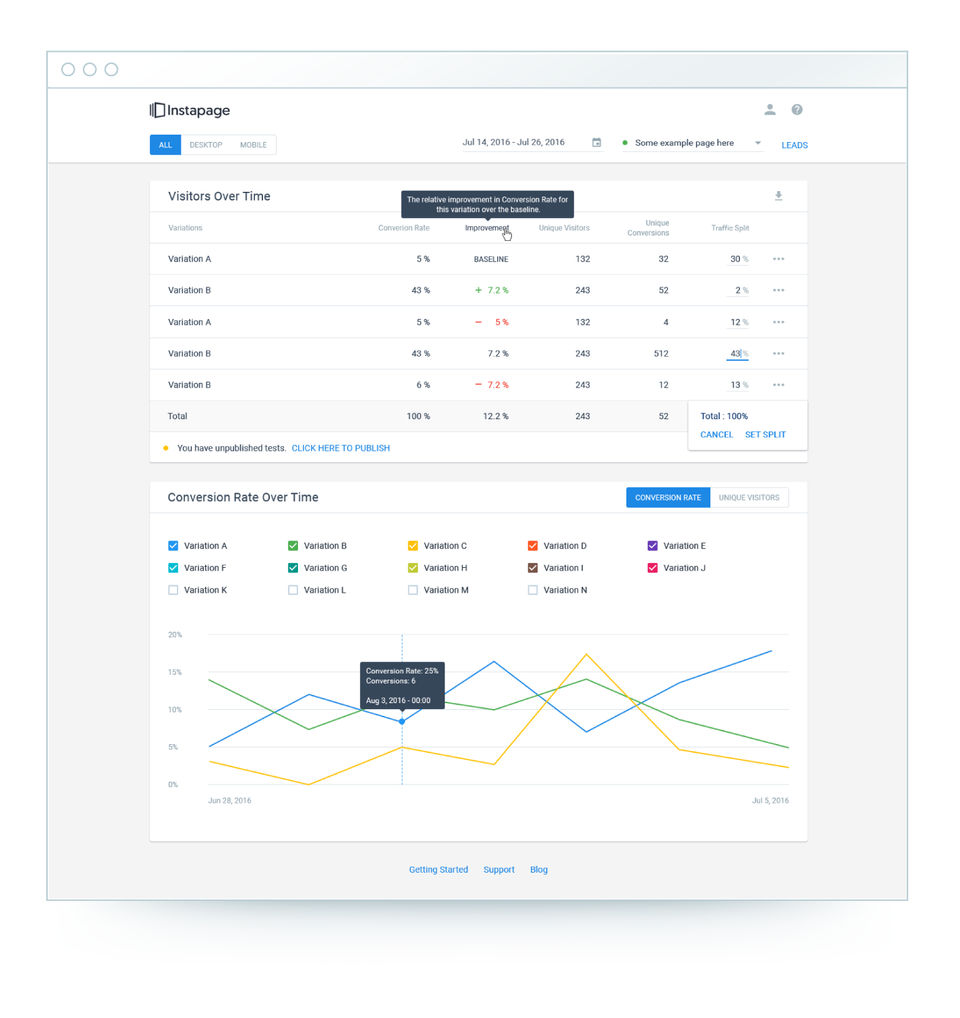 Some of the features I wanted to use such as using html forms & A/B page testing are considered advanced and require a more expensive package so upgrading is required. I am not a fan of the conversion dashboard, it's kind of clunky.