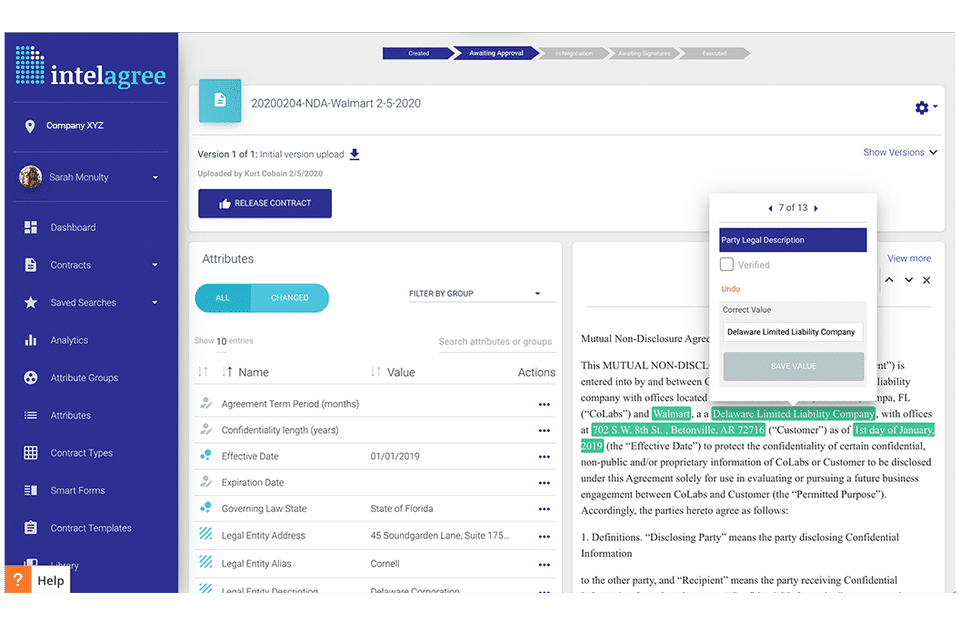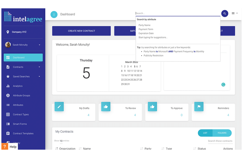IntelAgree is the Contract Management Software used for the below functionalities.
