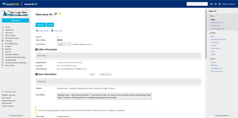 Issuetrak is the Help Desk Software used for the below functionalities.