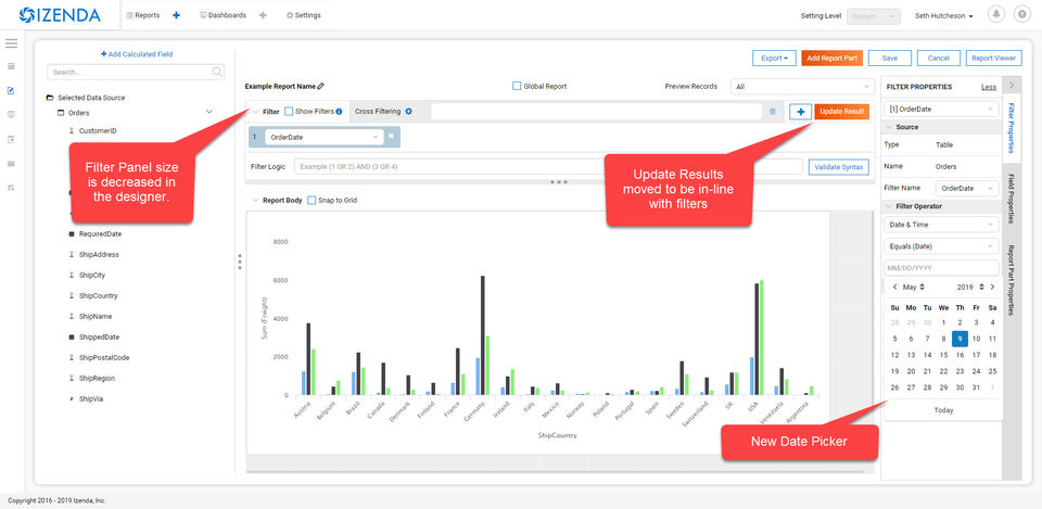 The option to separate data by different Tenants is easy to implement and works well. Being able to copy reports between tenants will be useful. Also the introduction of change history for reports will be popular with our users. The Izenda support team have been really helpful and have a very good response time.