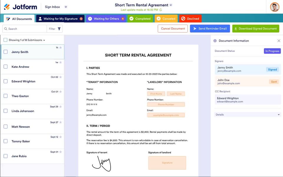 Jotform Sign is the Electronic Signature Software used for the below functionalities.