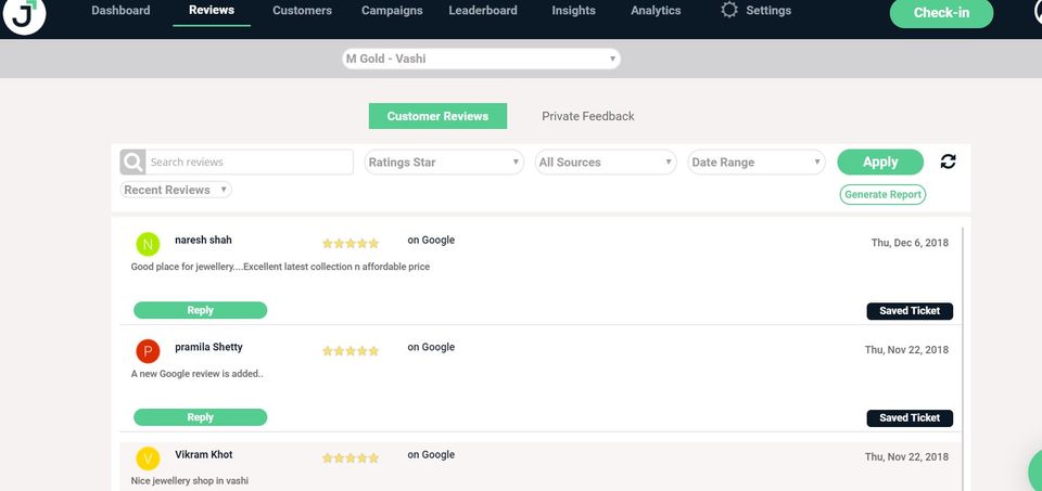 Jumpstart is the Reputation Management Software used for the below functionalities.