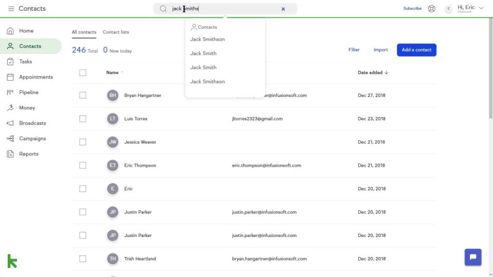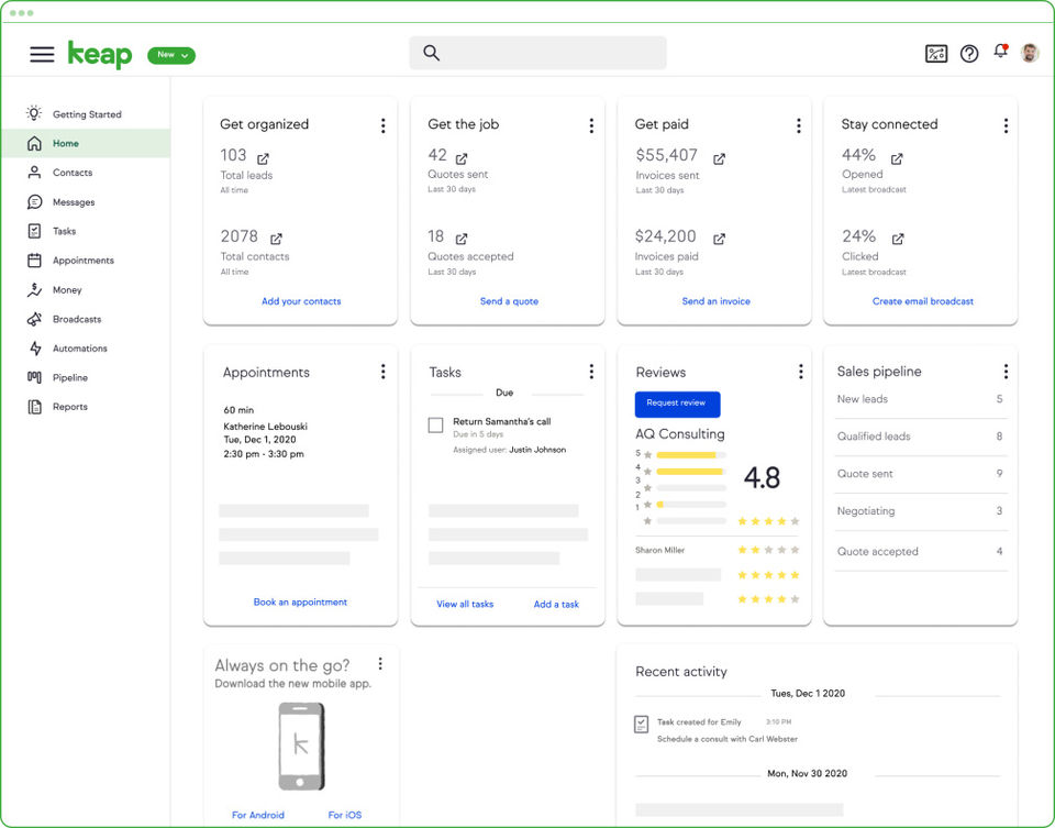 Keap is the CRM Software used for the below functionalities.