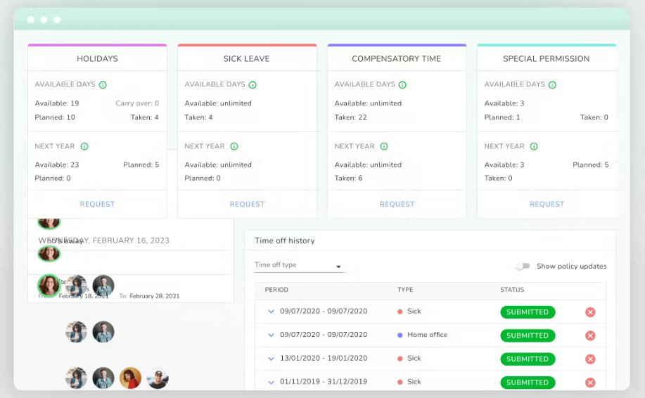 Shift planning tools allow managers to build rotas, assign shifts, and track working hours. Employees can check in and out using mobile geolocation, QR codes, or PINs. All data is synchronized into timesheets for automated overtime calculation and approval processes. Absence and leave requests are handled through the app, with vacation balances calculated in real-time.