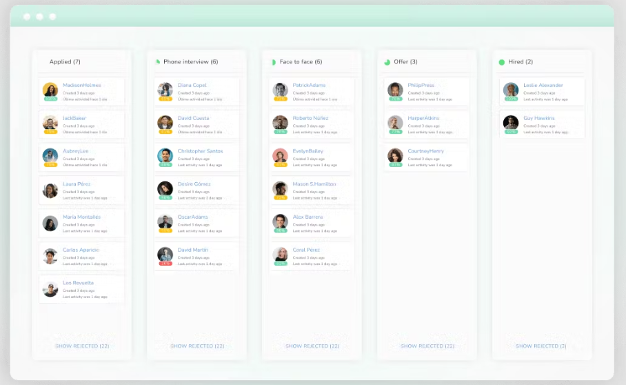 Recruitment & ATS: Applicant tracking, job posting, interview scheduling