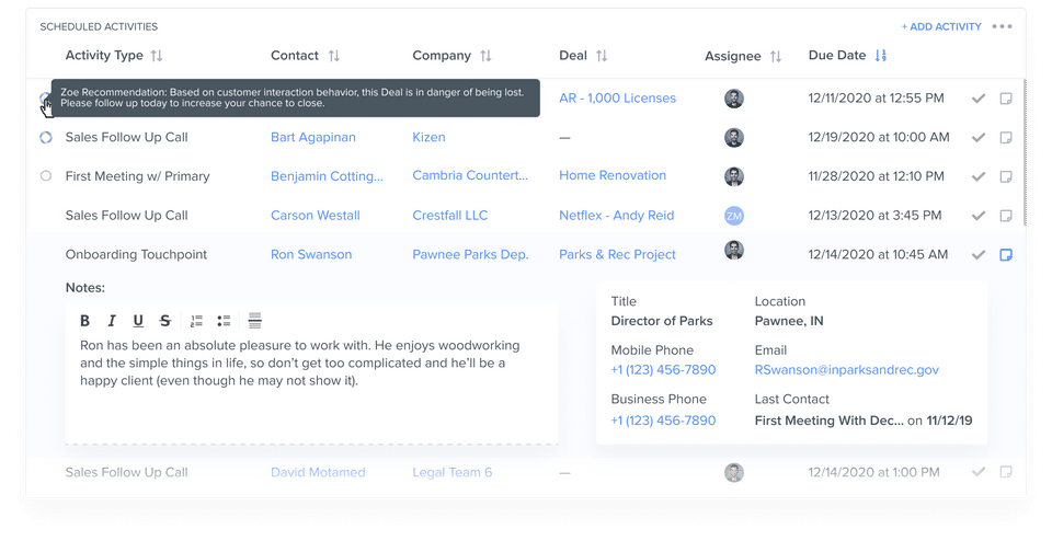 - Customizable Sales Activities : 20
