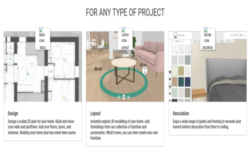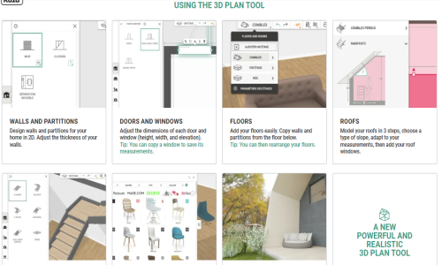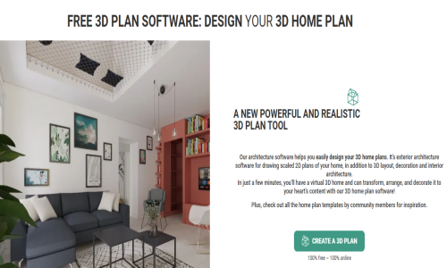3D Planning Software: A free, intuitive tool that allows users to design, decorate, and virtually tour their home plans. It supports the creation of unlimited plans and is accessible from any computer.