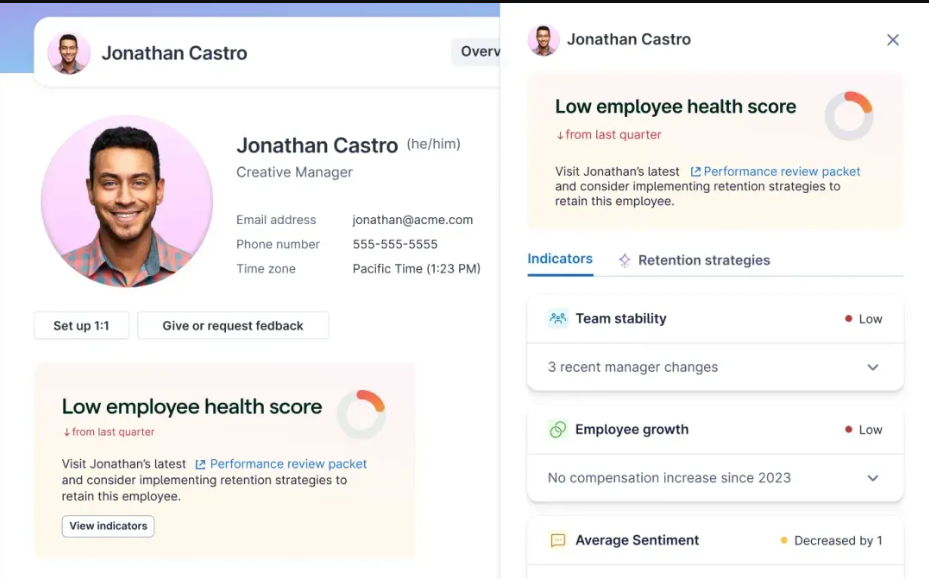Performance Reviews: Customizable review cycles and 360-degree feedback.