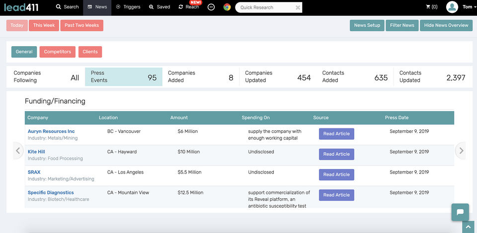 We all know that data changes on a monthly basis but Lead411 has Nifty process in keeping their data accurate and up to date. The other thing that I like is that I get notifications when something is changed within industry data that we are tracking. Also, I like its feature where we can identify “Talking points” we can use in outreach interactions.