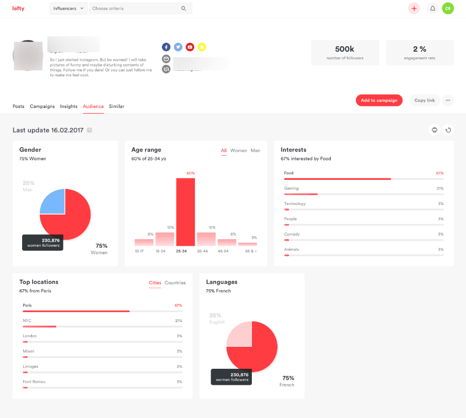 Lefty is an advanced influencer marketing solution designed to help brands collaborate with the right influencers and drive meaningful results. It uses a data-driven approach to help marketers identify influencers whose audiences align with their brand values and goals. With thousands of influencer profiles, brands can filter by engagement rate, location, interests, audience demographics, and more, ensuring each collaboration is strategic and impactful.