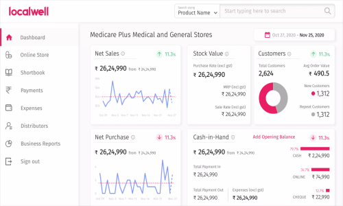localwell is the Pharmacy Billing Software used for the below functionalities.