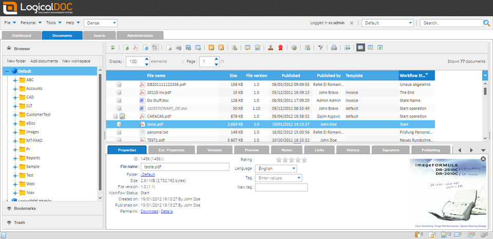 It's really difficult for me to manage my documents but the LogicalDoc provided the best solution for my problems. Now, I don't need to store the files in my system. I always upload the files on the LogicalDoc and its amazing features always help me in doing the required operations online like editing, searching and file preview etc.