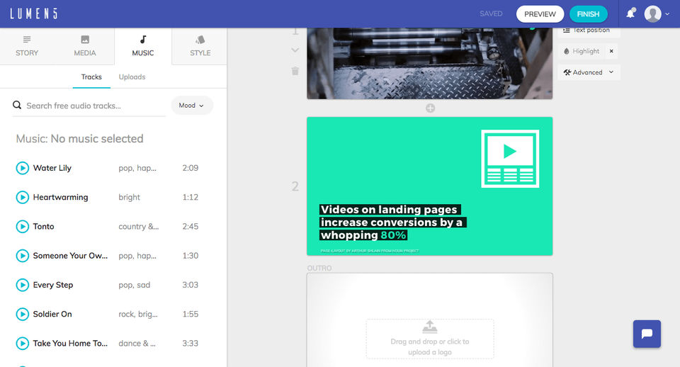 Lumen5 is the Video Editing Software used for the below functionalities.