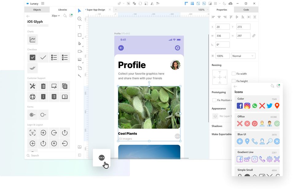 Lunacy is the Free Graphic Design Software used for the below functionalities.