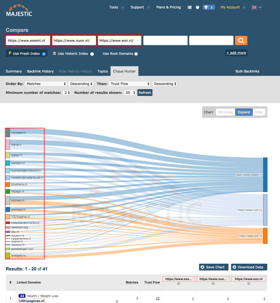 Strong competitor backlink comparison