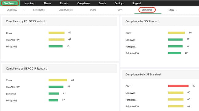 3. Compliance Reporting: Firewall Analyzer aids businesses in fulfilling regulatory obligations. It provides pre-built compliance reports for standards including PCI DSS, HIPAA, ISO 27001, and others. These reports help organizations evaluate their security stance and create audit-ready records.