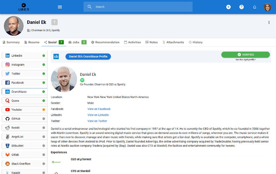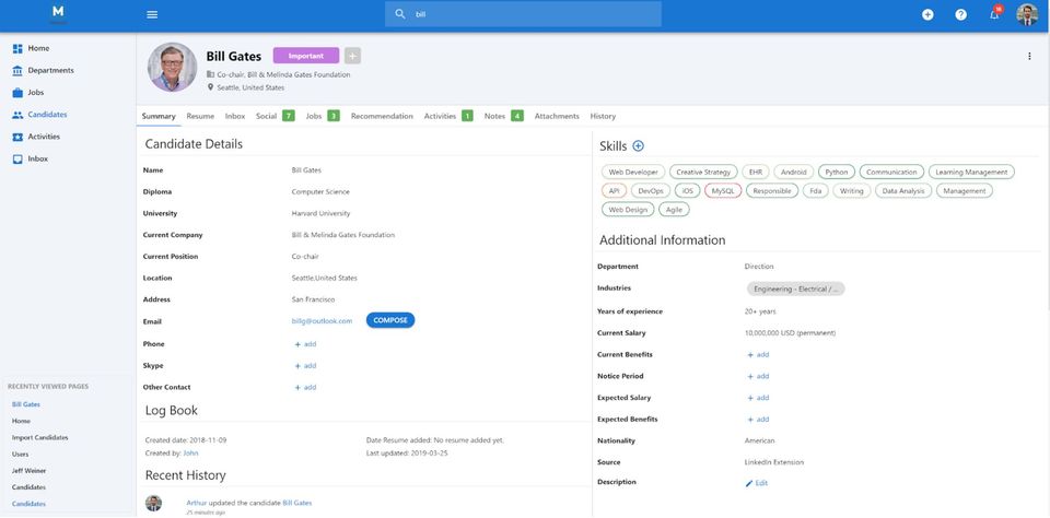 - Automated enrichment of candidate profile on social media (LinkedIn