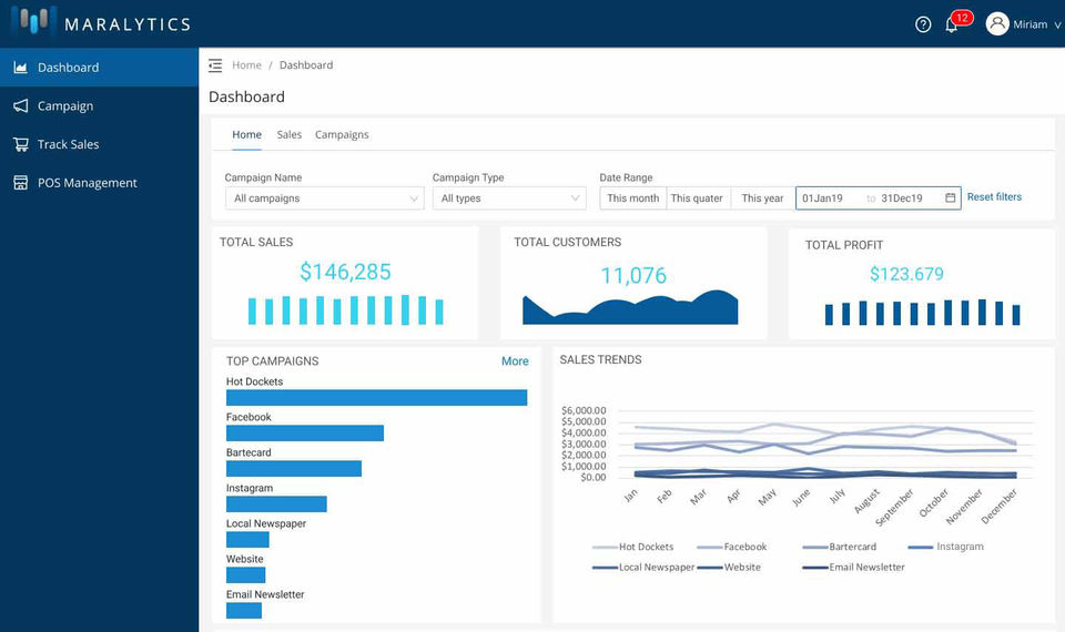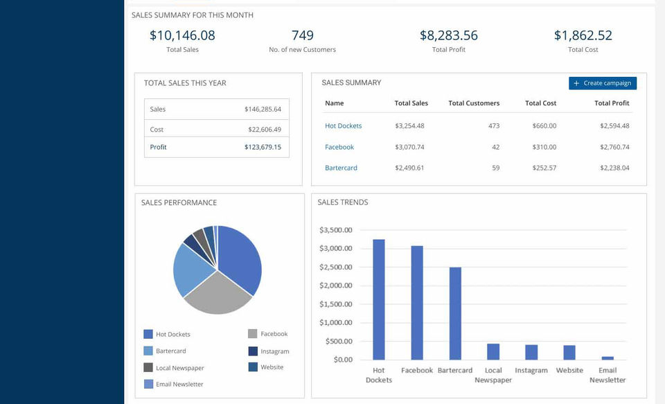 - Reports Campaign Profit Total Sales Total Customers Profit per