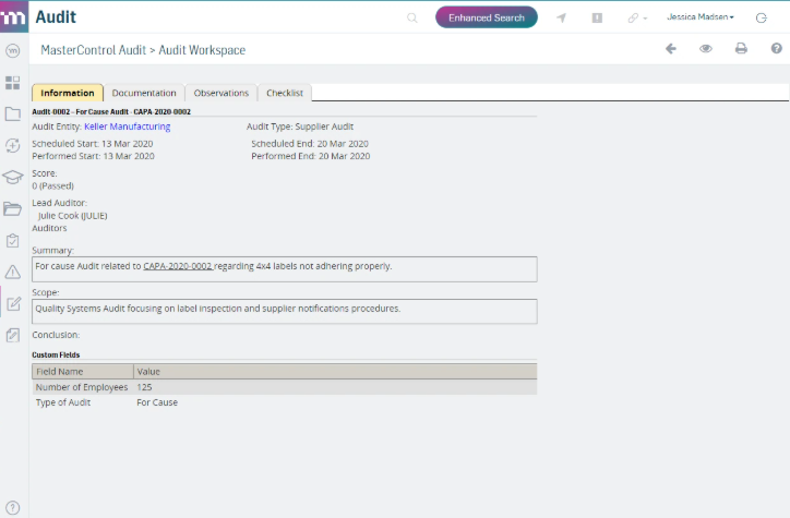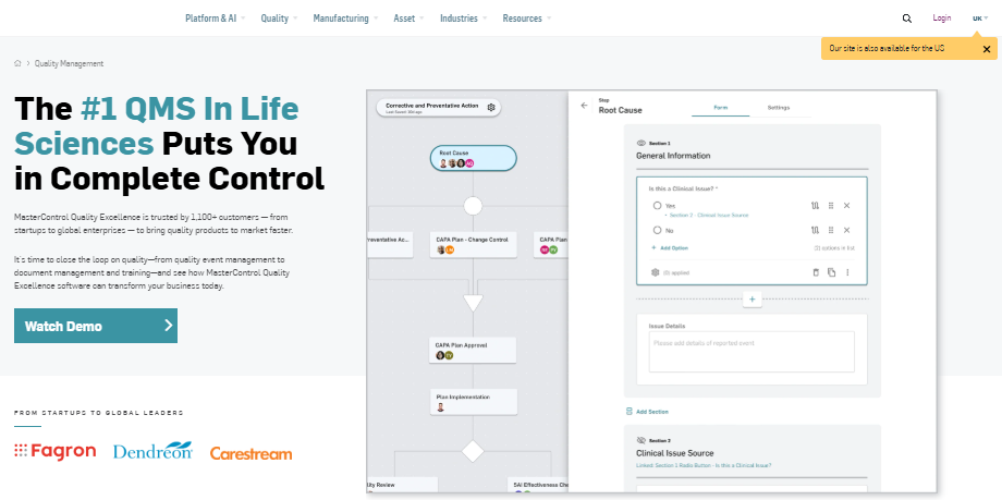 MasterControl Quality Excellence is the Quality Management Software used for the below functionalities.