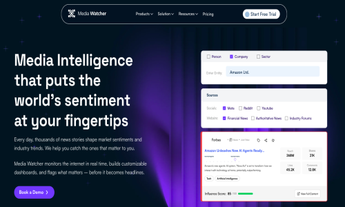 Media Watcher is an AI-powered media monitoring platform that helps businesses track and analyze online mentions across news sites, blogs, forums, and social media in real-time. Designed for marketing teams, PR professionals, and brand managers, it delivers deep insights, sentiment analysis, and trend detection to support smarter decision-making. Whether managing brand reputation, monitoring competitors, or tracking industry news, MediaWatcher.ai provides the tools you need to stay informed and ahead of the curve. Easy to use, scalable, and data-driven—MediaWatcher.ai is the smarter way to watch the media.