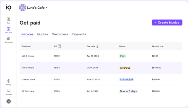 Payment Tracking: Monitor payment status (sent, pending, paid) in real-time.