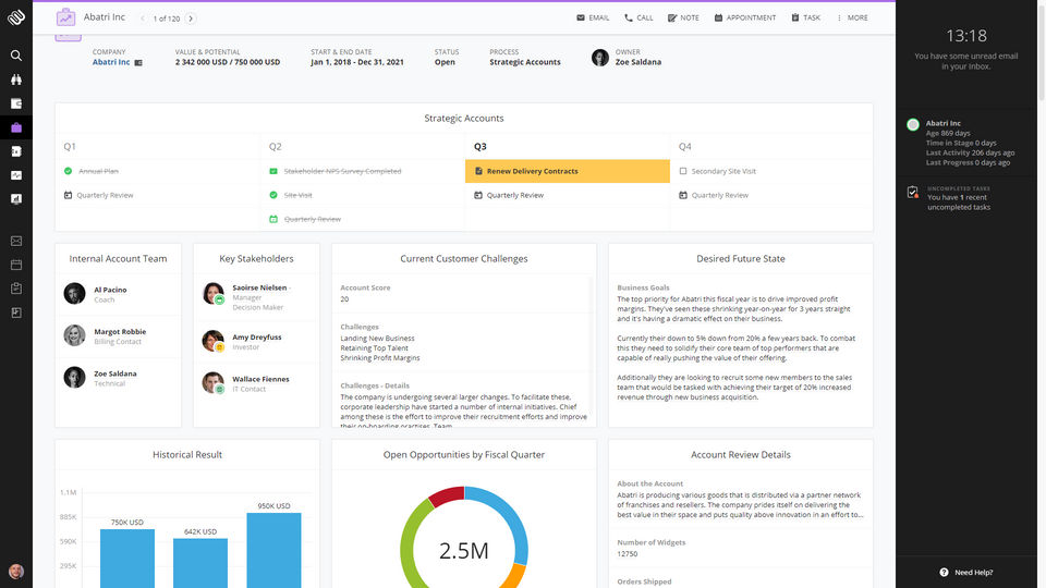 We follow the Baseline Selling sales methodology. Membrain works in sync with our sales process and helps to spot areas that need more information and reminds us to ask more questions. Asking more questions is essential to learn more about your client.