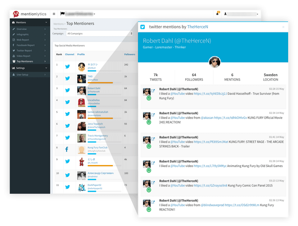 The user interface is quite good and easy to understand. I quickly adapted and found the top mentioners straight away. Compared to other social media monitoring tools that I have tested this is by far the most user friendly.