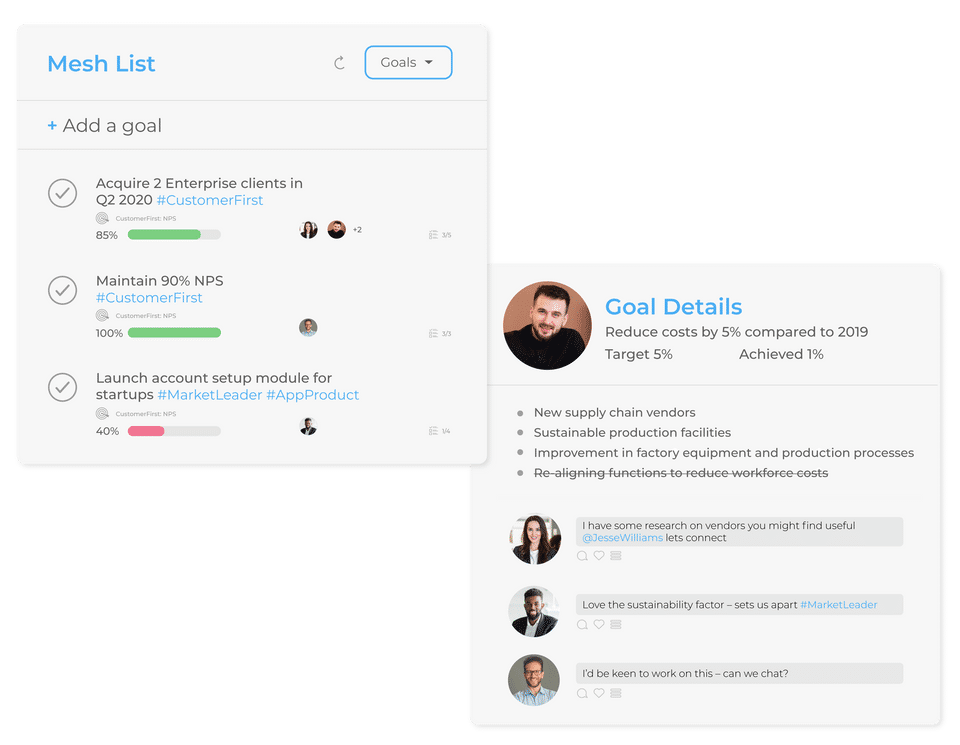 Mesh is the OKR Software used for the below functionalities.