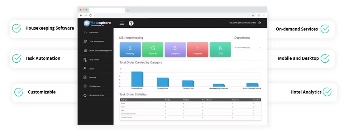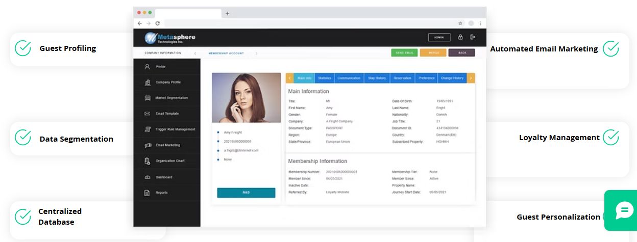Metasphere is the Hotel Management Software used for the below functionalities.