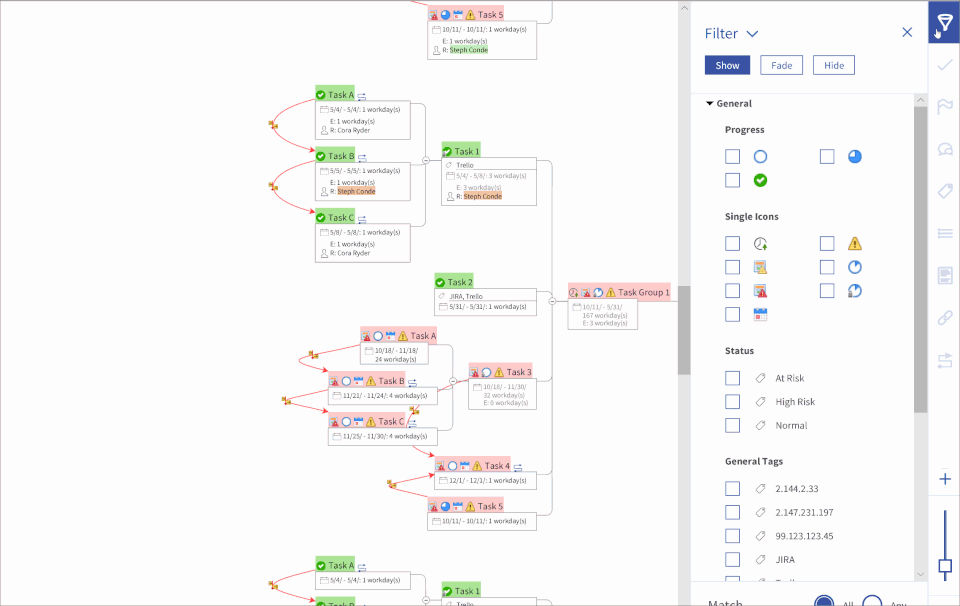 - while the software does have compatibility to assign resources and due dates, no one is going to use it for this feature. The software is lacking in several ways: unable to email out tasks to people, unable to hold people accountable for them, MS projects does a much better job