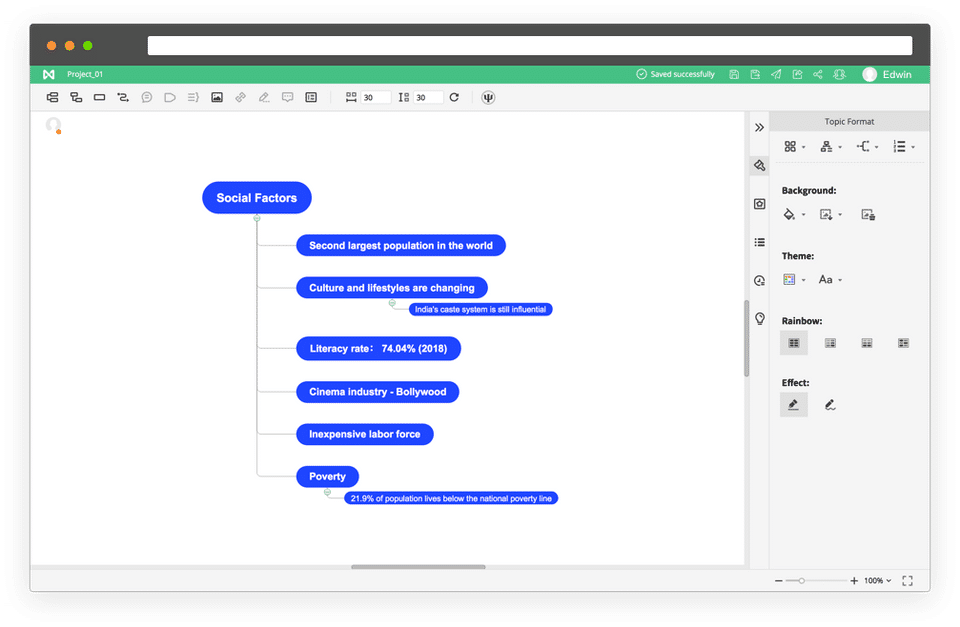 - One-click mind map generation