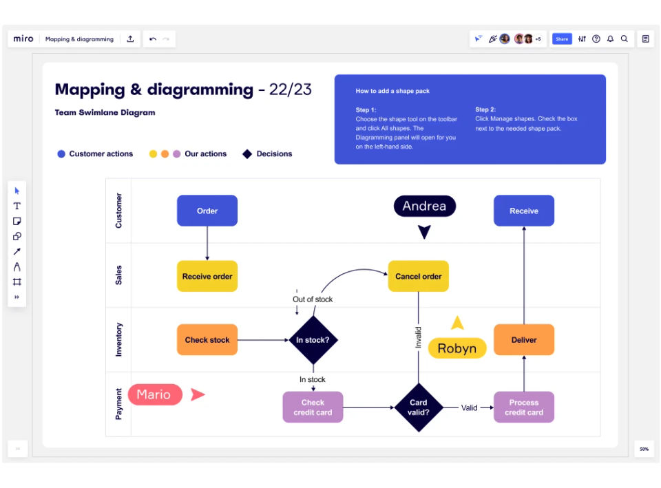 Sticky notes, diagrams, and drawing tools