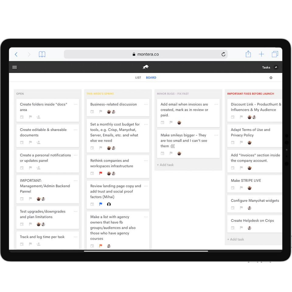 Montera is the Collaboration Tool used for the below functionalities.