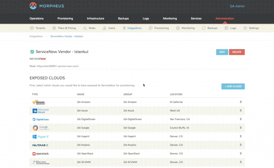 Morpheus Data is the Cloud Management Platform used for the below functionalities.