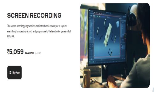 The bundle’s core applications include a full video-editing platform with timeline controls, visual effects, transitions, audio tools, AI background removal, noise reduction, and auto-captioning capabilities. The screen recorder enables high-quality desktop, webcam, and microphone capture — essential for educators, trainers, gamers, and business demonstrations.