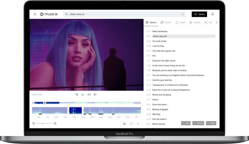 I use Muse.ai to search through conference videos and quickly find snippets of interest. I frequently use the key word search function and have found some really interesting video scenes by virtue of skipping through related keywords. This is unique to this platform and I have found it invaluable. This platform can improve further but it is already super useful.