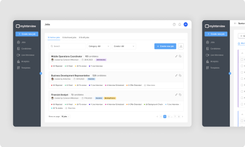 myInterview Features include smart analytics, AI-driven insights, branding tools, and integration with popular Applicant Tracking Systems. Whether you're hiring remotely or managing large applicant volumes, myInterview helps you make quicker, better-informed hiring decisions.
