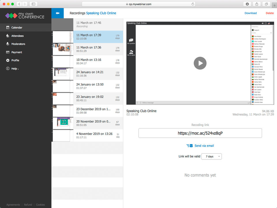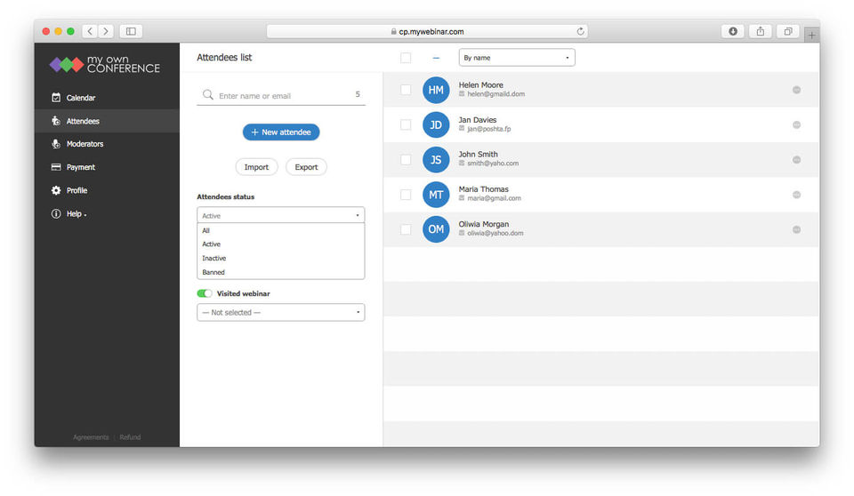 The program is excellent, if you have a good economic base to pay your high costs, MyOwnConference is the ideal software for your company.