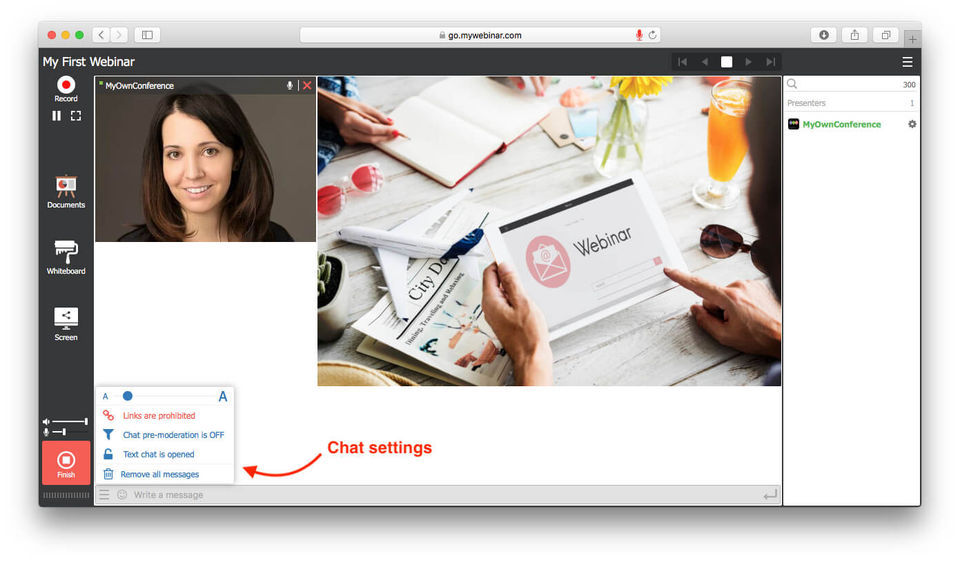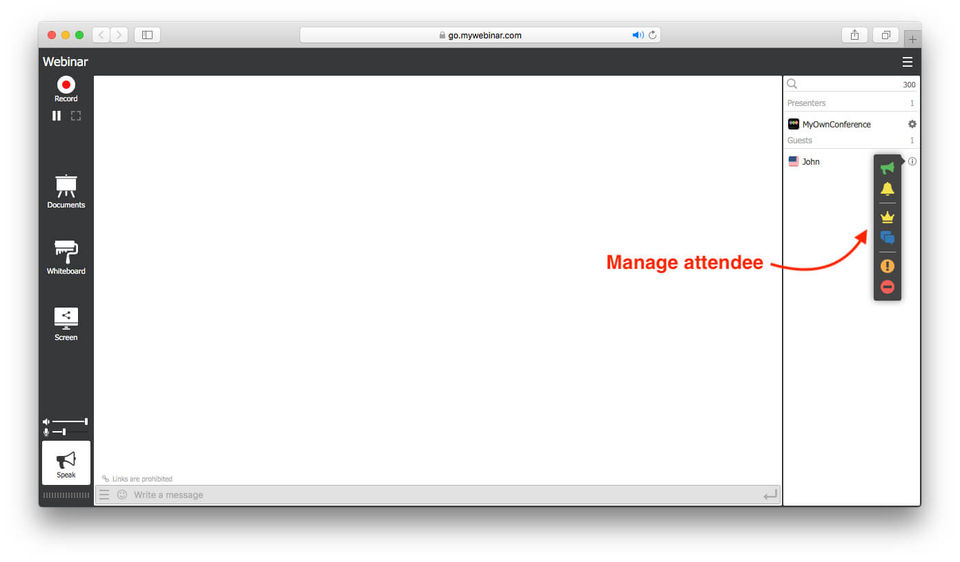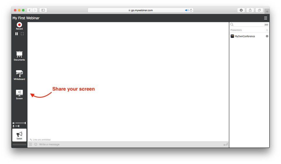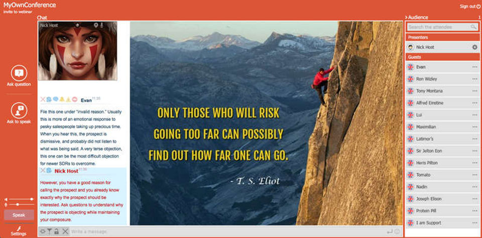 MyOwnConference is the Free Webinar Software used for the below functionalities.