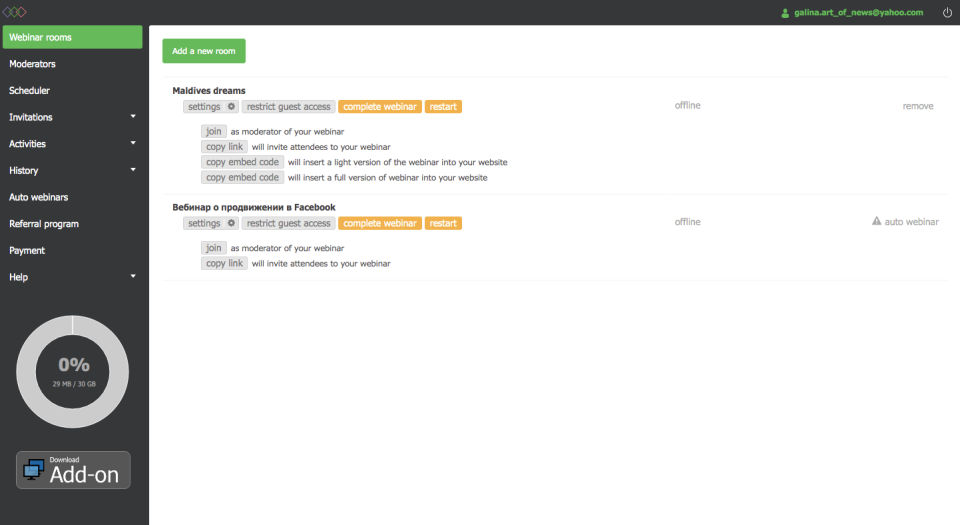 At the beginning it took me a while to learn how to use this platform, but I did it and carried out my first webinar with their help, but with problems. I think this software is overrated, you can also get similar software for a lower cost.