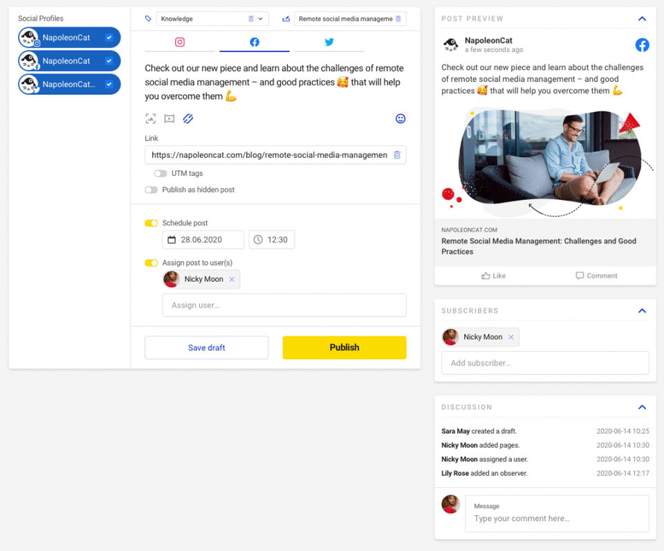 NapoleonCat is the Social Media Management Software used for the below functionalities.