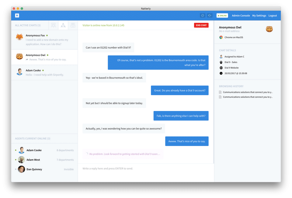 Natterly is the Live Chat Software used for the below functionalities.