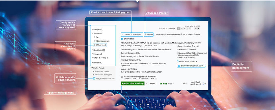 Naukri RMS is the Applicant Tracking System used for the below functionalities.