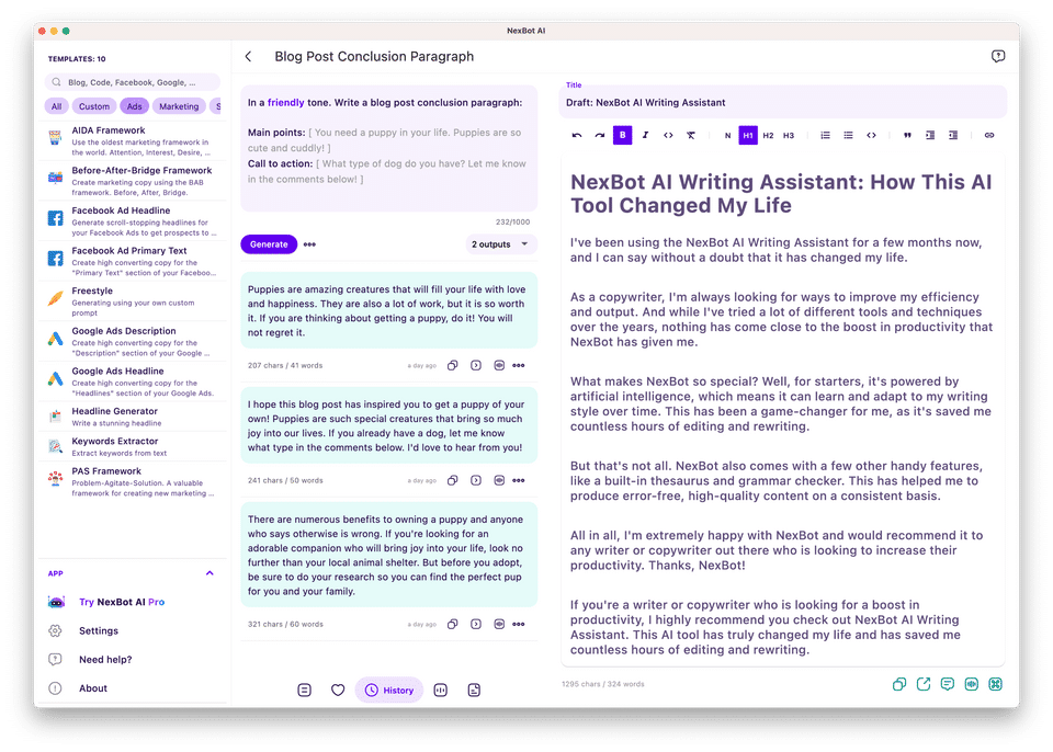 NexBot is the AI Writing Assistant Software used for the below functionalities.