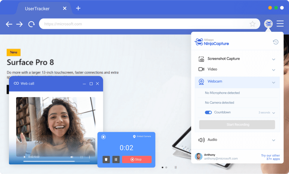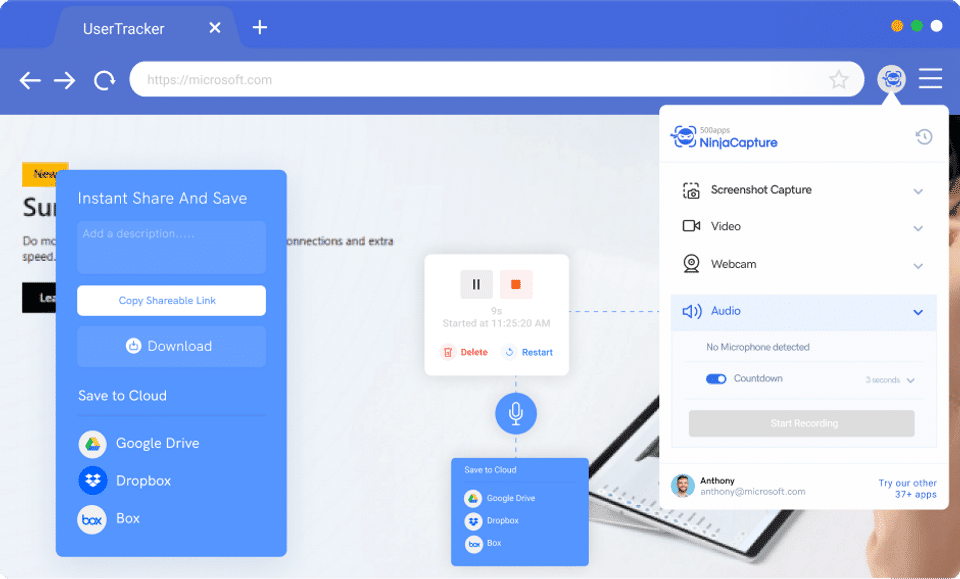 NinjaCapture by 500apps is the Screen Recording Software used for the below functionalities.