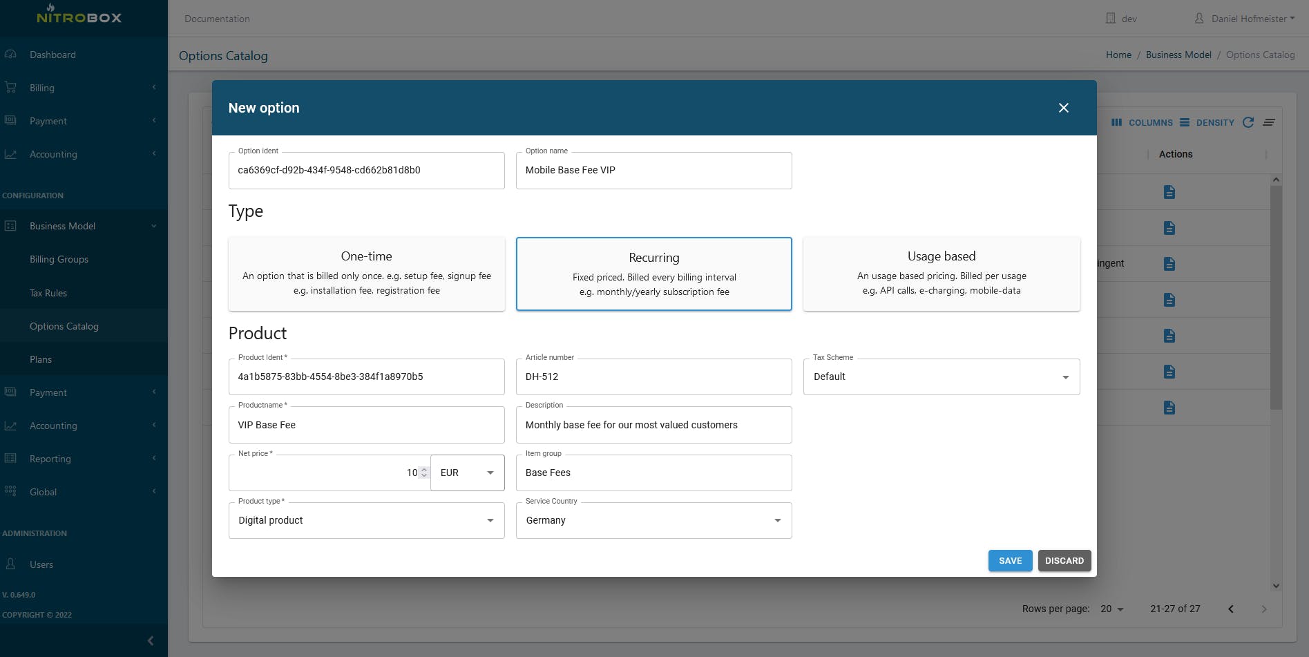 Pricing plans