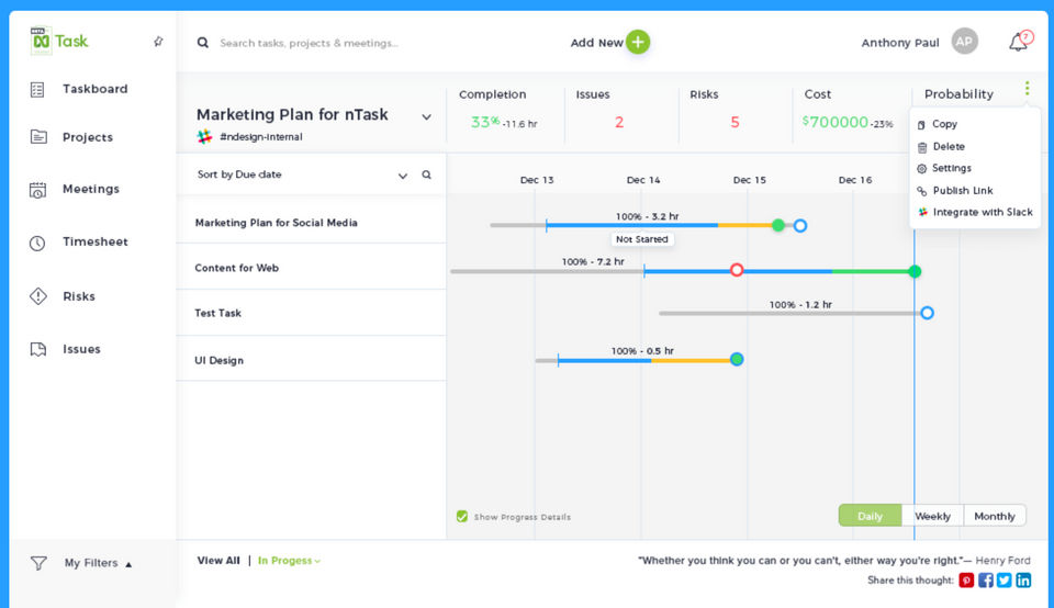 nTask is the Project Management Software With Microsoft Teams Integration used for the below functionalities.